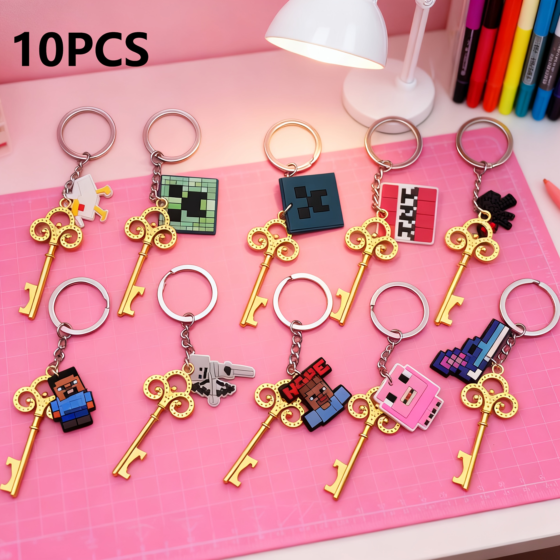 10pcs MINECRAFT Keychains with Openers - Official Minecraft-Themed Keys with Creeper, Sheep, Diamonds, TNT, Golden Tools - Durable PVC & Stainless Steel - Birthday, Christmas, Halloween, Holiday Gifts, Pixel Art Design, Decor
