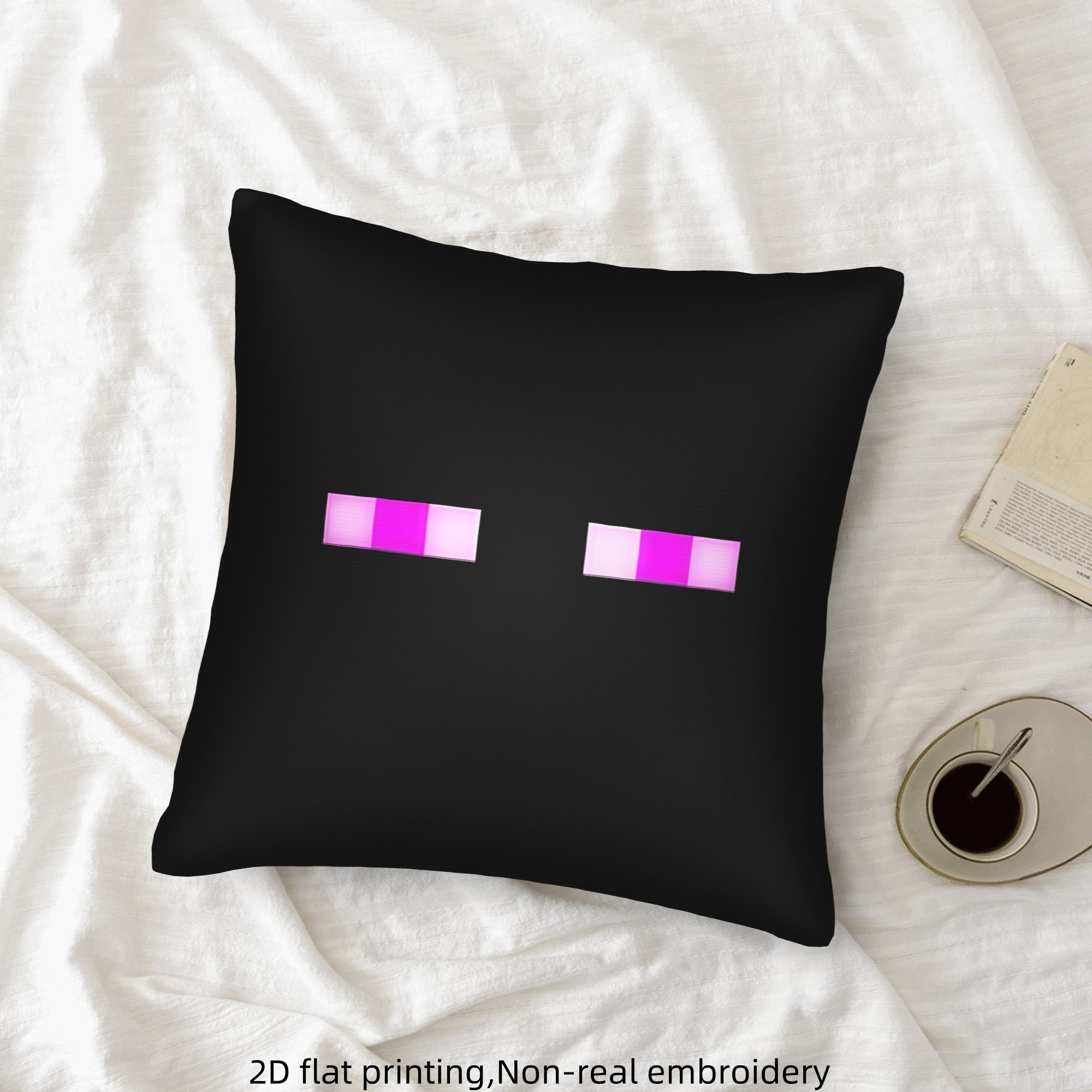 1pc 2D Flat Printing Pixel Art Mysterious Eye Pillow Cover, Polyester Material, Single-Sided Printing, Without Pillow Core. Black Background with Pink And Purple Pixel Eyes, Exuding a Game Room Psychedelic Vibe, Suitable for