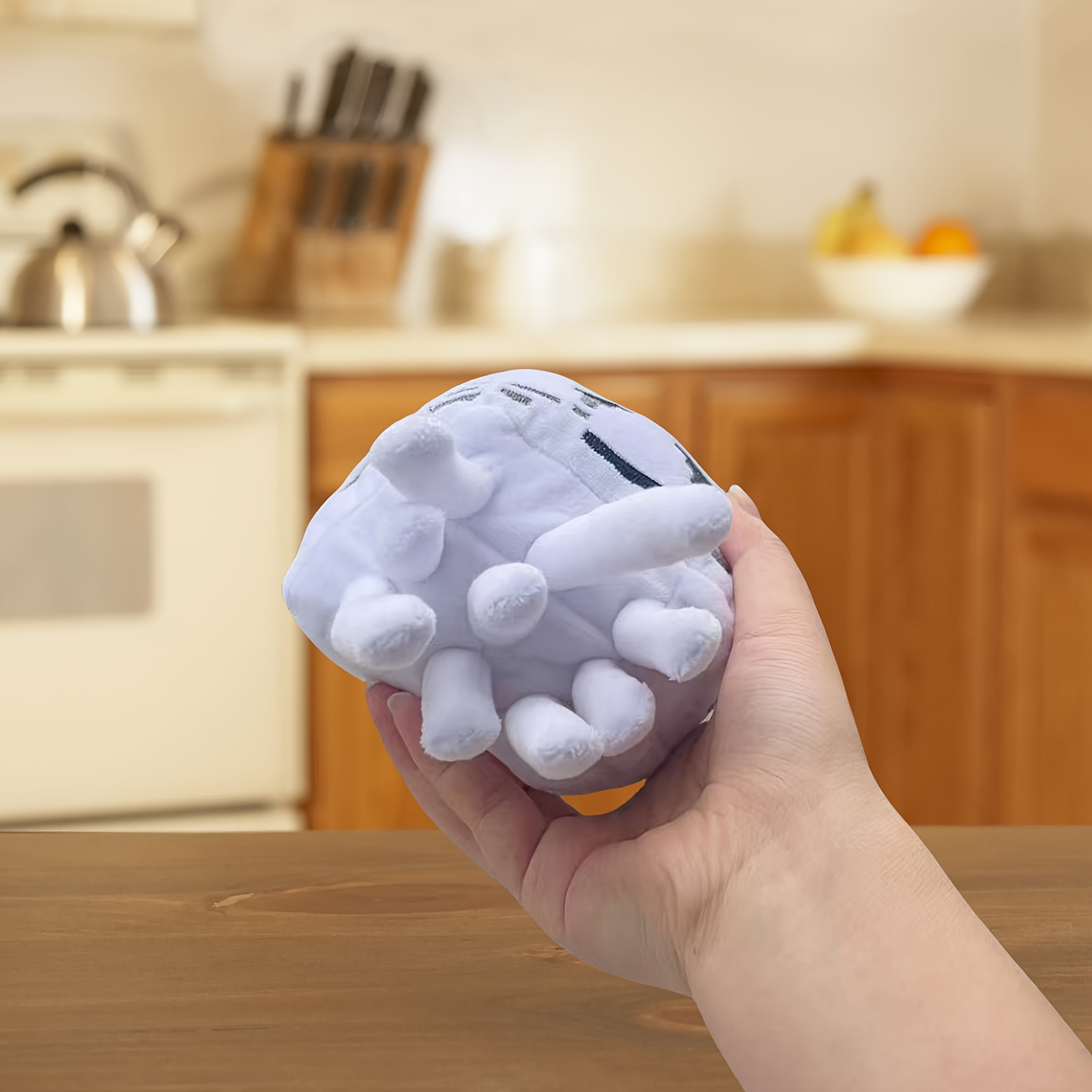 1pc Cube-Shaped Nine-Legged Plush Stuffed Doll - Soft White & Deep Brown Interactive Toy with Pixel Eyes & Mouth, Cute Kids Gift for Birthdays, Children's Day, Festivals, Stuffed Plushies, Children's Gift Item