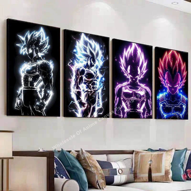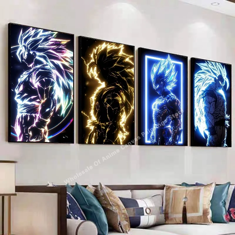 Anime Dragon Ball Wukong Neon Light Effect Poster High Definition Image Printing Creative Home Art Wall Decoration Painting