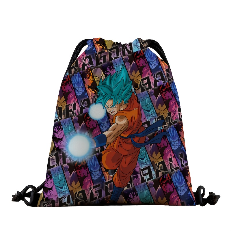 DRAGON BALL Anime Backpack with Goku, Vegeta & Sun Wukong (Monkey King) Designs - Lightweight Adjustable Drawstring Bag & s,, Gym, Parties - Collectible Gift & (Officially Licensed)