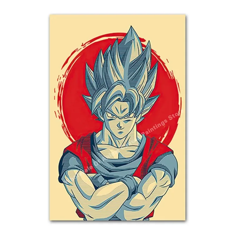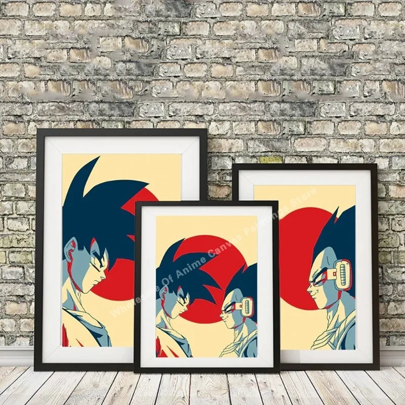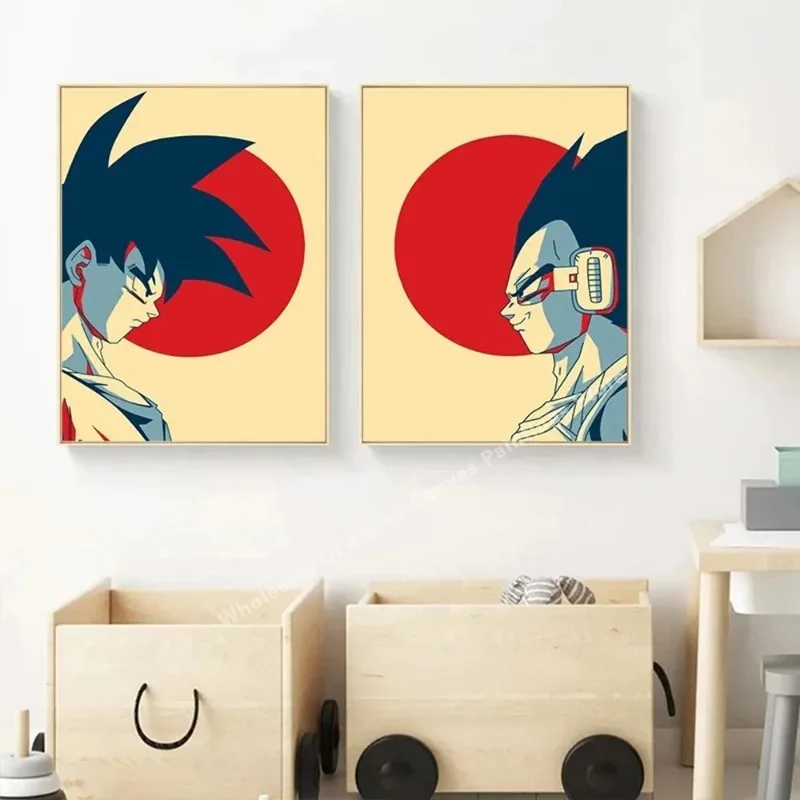 Dragon Ball Vintage Japanese Poster Vintage Canvas Painting Goku Vegeta Cartoon Kids Wall Painting Kids Gift