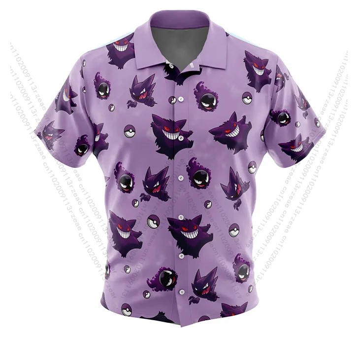Gengar Pokemon Anime Summer Hawaii Beach Vacation Shirt Men's Punk Y2K Cosplay Print Kids Fashion Casual Fashion Trends Shirt