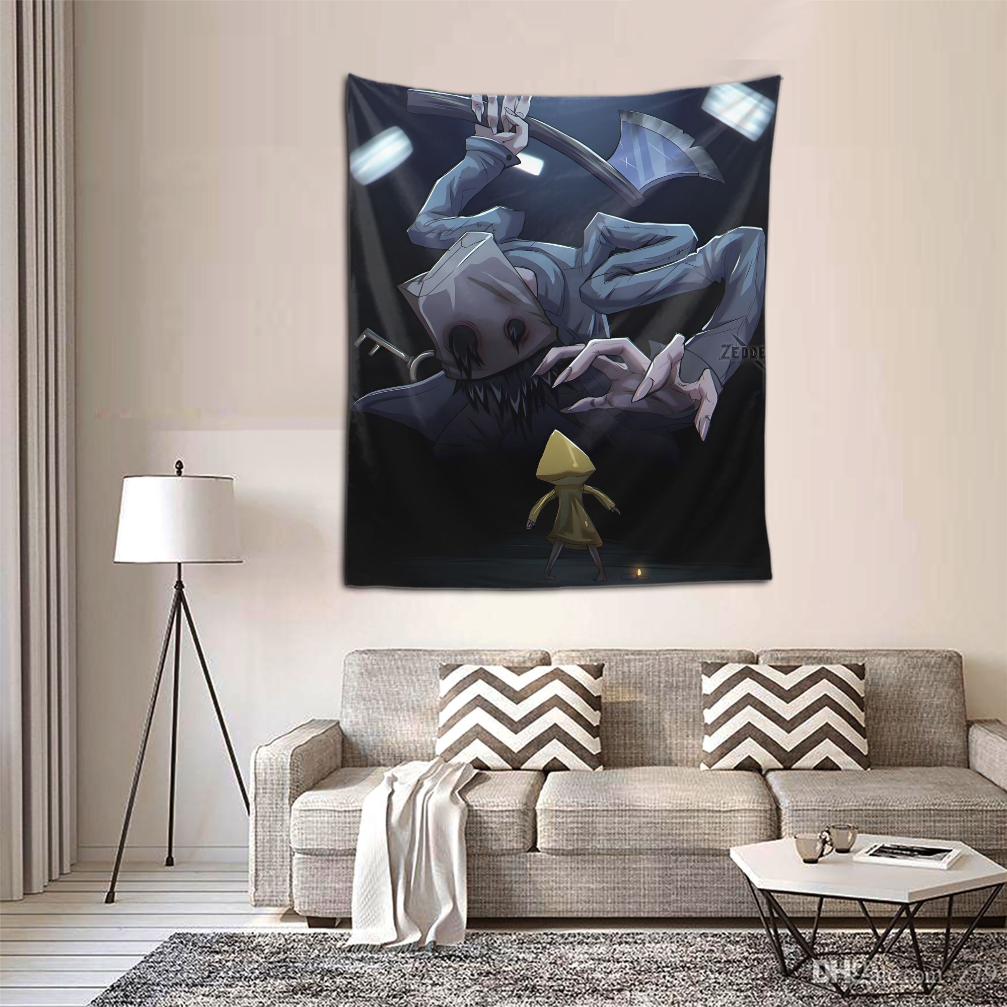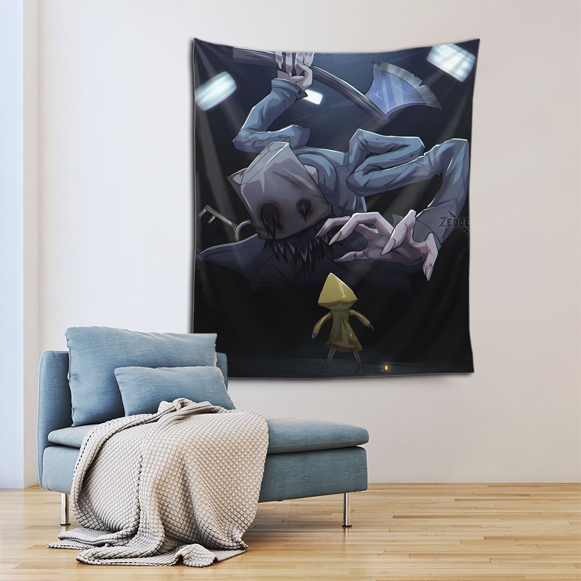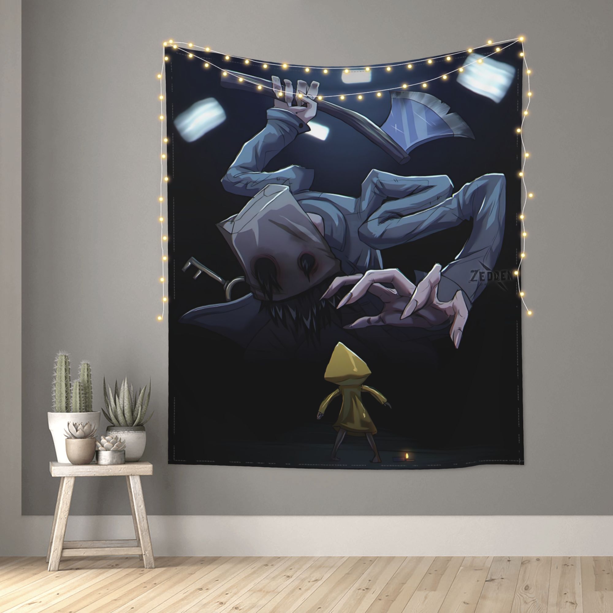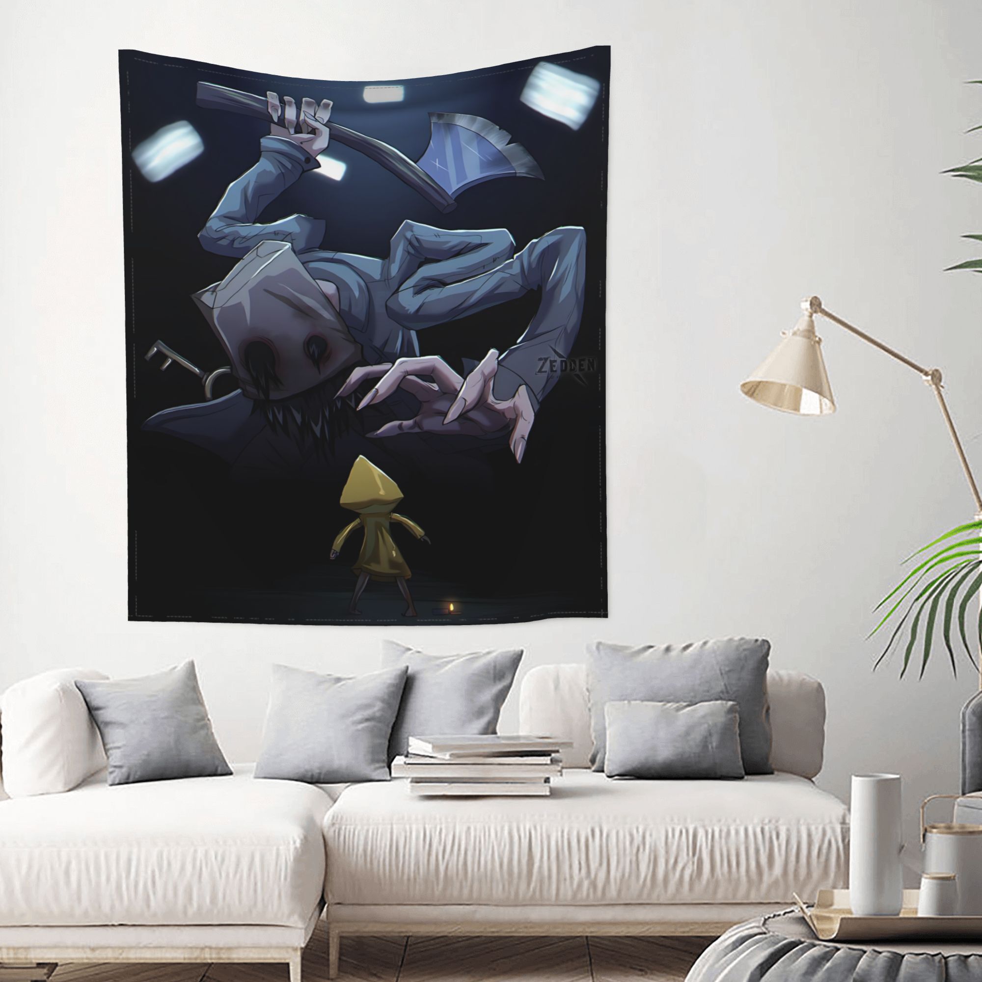 Little Nightmares II Vertical Tapestry - Gothic Horror Wall Hanging Decor with Little Nightmares Characters, Soft Peach Light Fabric Poster for Bedroom