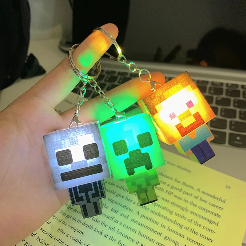 MC Game Creativity Keychain MyWorld 3D Sandbox Game Minecrafts Keychain Mini Building Blocks Light Up Creative Toy Novelty Gifts
