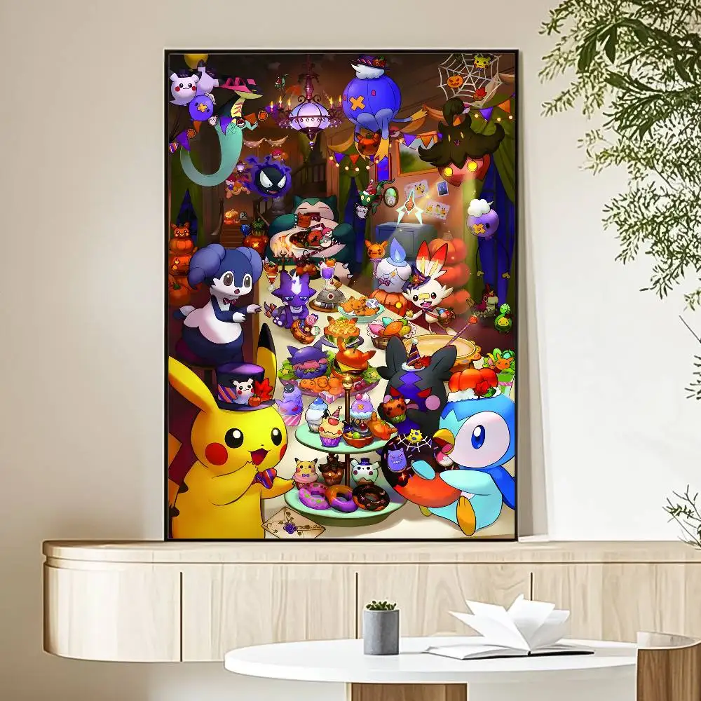 MINISO Cartoon Pokemon Anime Poster HD Art Sticky Wall Waterproof Home Living Room Bedroom Bar Aesthetic Decoration