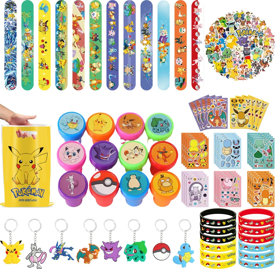 Pokemon Birthday Party Favors Pikachu Slap Bracelet Stamps Gifts Christmas Stocking Fillers Party Supplies Decoration Souvenirs